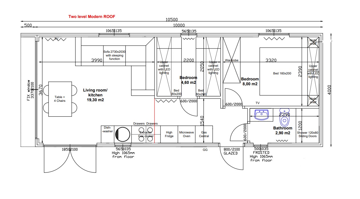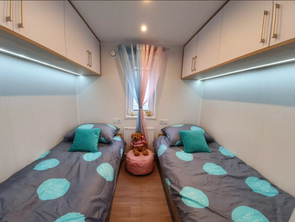 Incl. bedden en matrassen, opbergkast, nachtkastjes (nacht k.), vloerverwarming