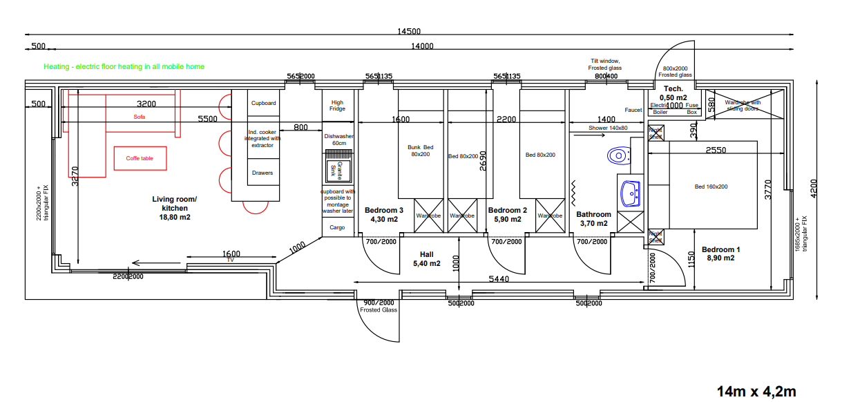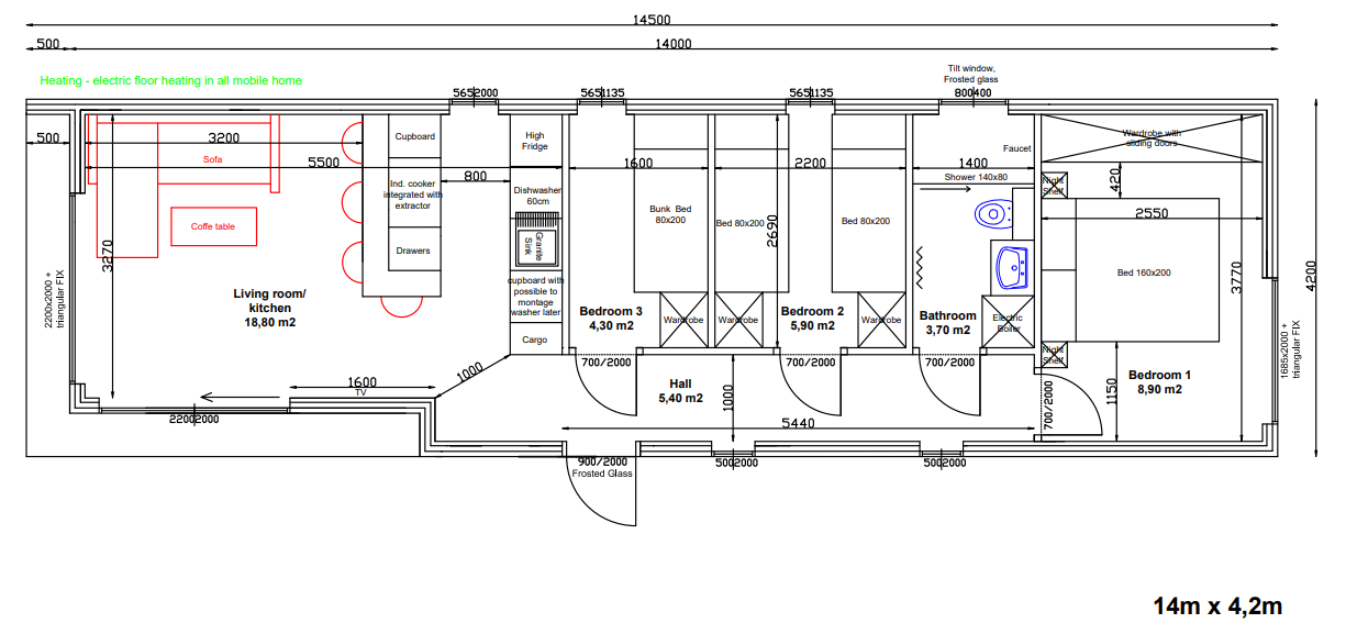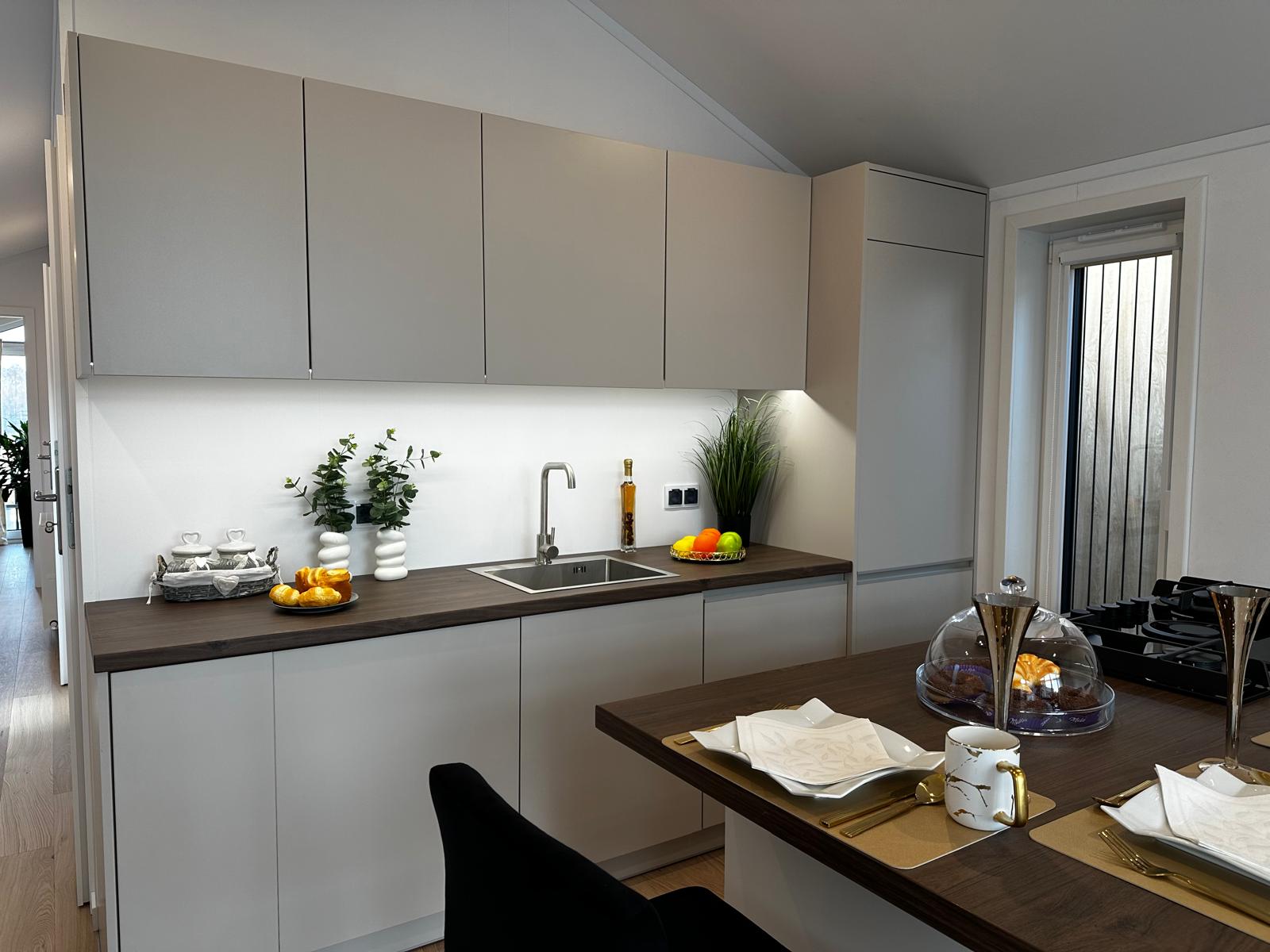 Bedden en matrassen, opbergkast, nachtkastjes, 3D beglazing, extra isolatie, kookeiland, PVC vloer, airco, vloerverwarming